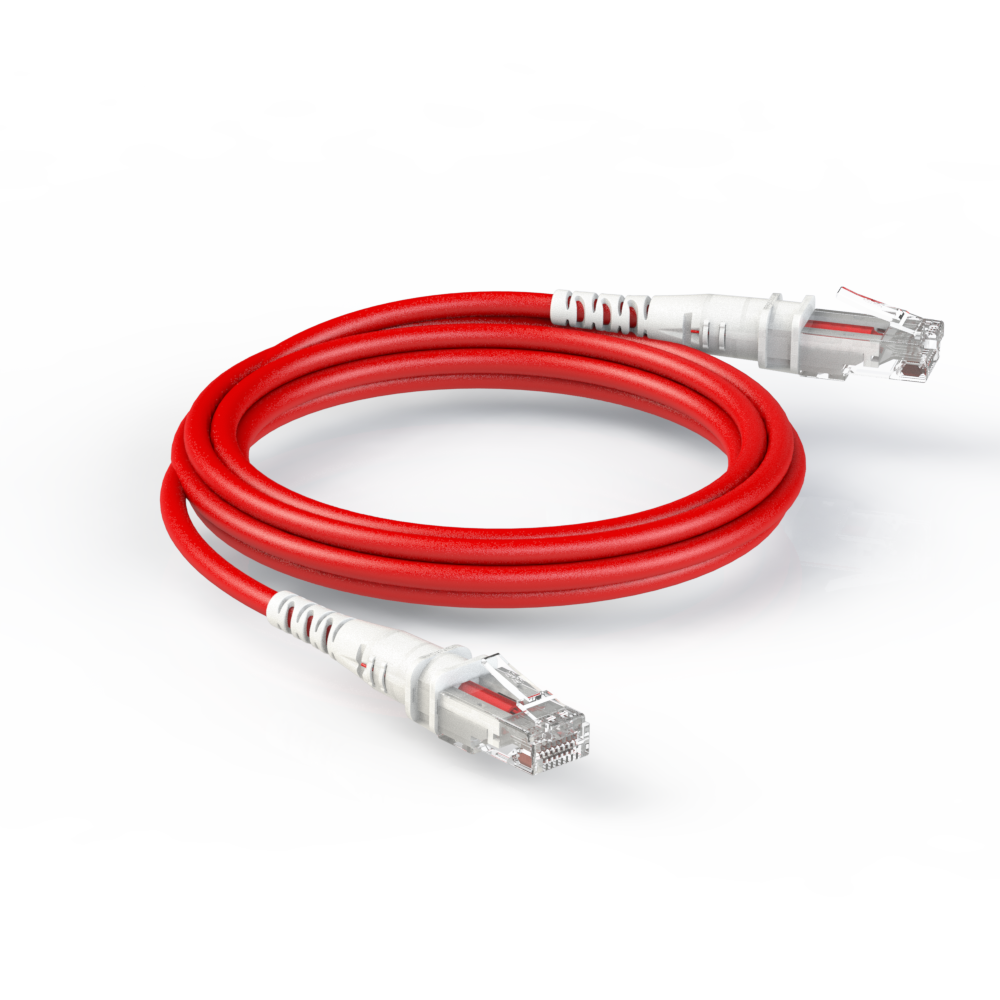 ThinPatch (Standard Red) - Ultra thin CAT6A RJ45 patch cords with optical fiber identification